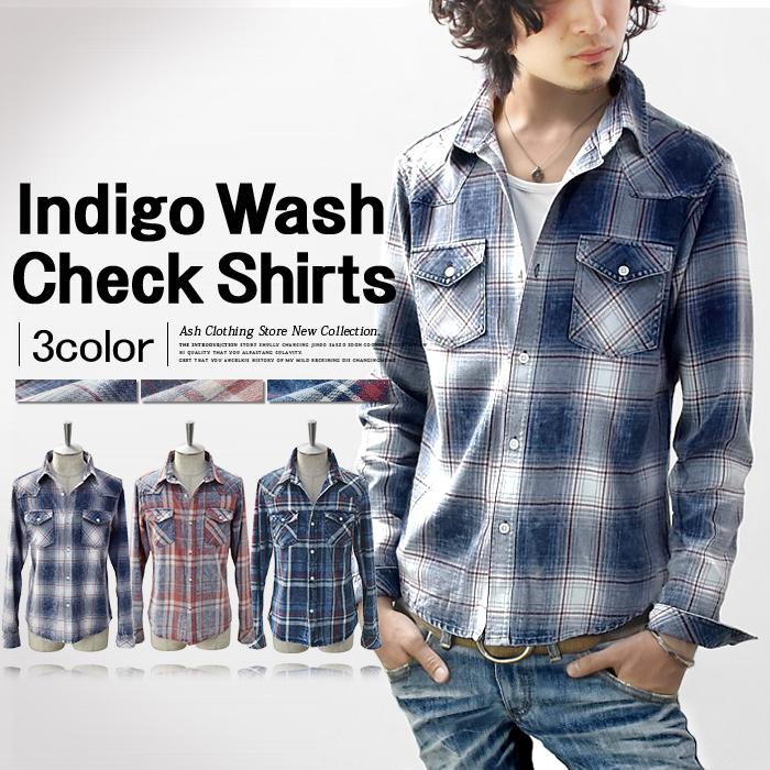 シャツ メンズ デニムシャツ チェックシャツ 長袖 ウエスタンシャツ インディゴ ボタンシャツ スリム カジュアル Ash Yahoo 店 通販 Yahoo ショッピング